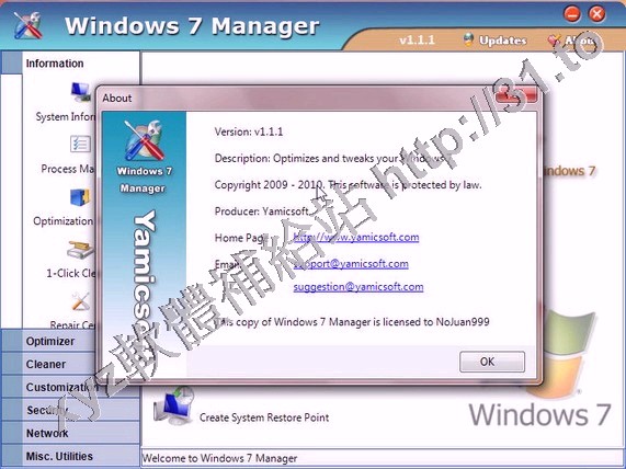 • Yamicsoft Windows 7 Manager v2.1.5 英文正式版(Widnows 7 總管是優化和設置軟體)
